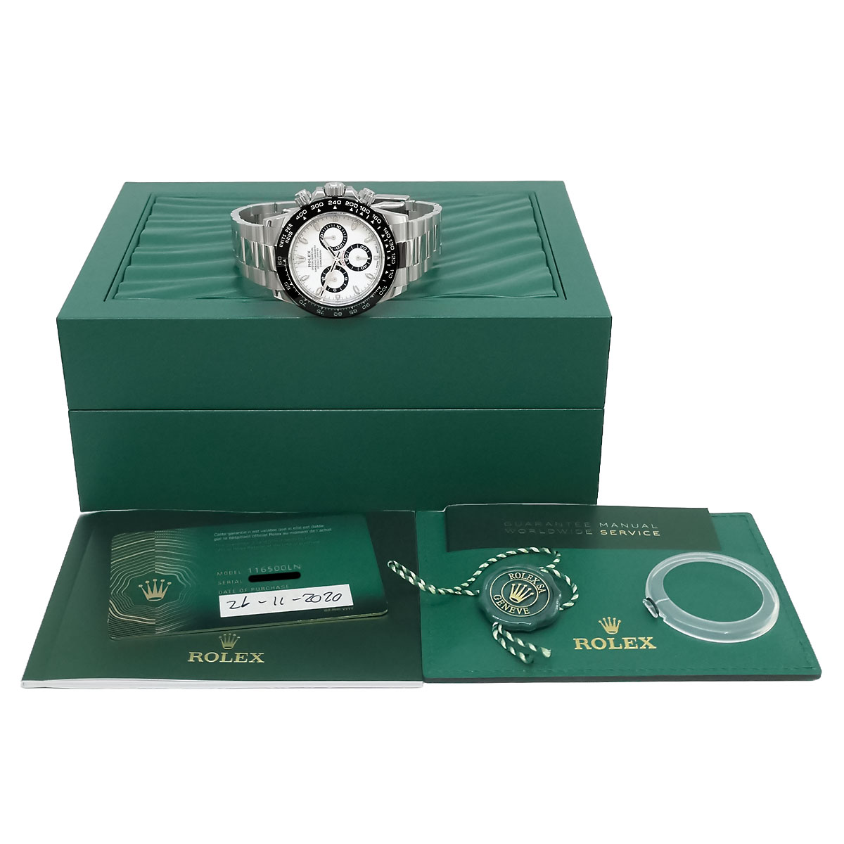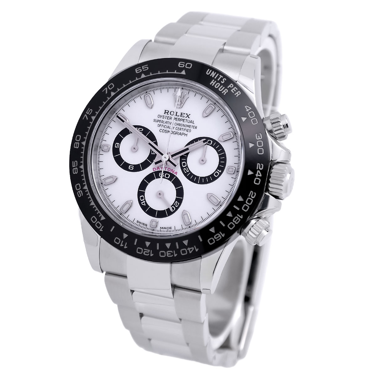 The Cerachrom bezel is scratch-resistant and insensitive to UV radiation, which ensures its color fastness. The Daytona is water-resistant to 100 meters.