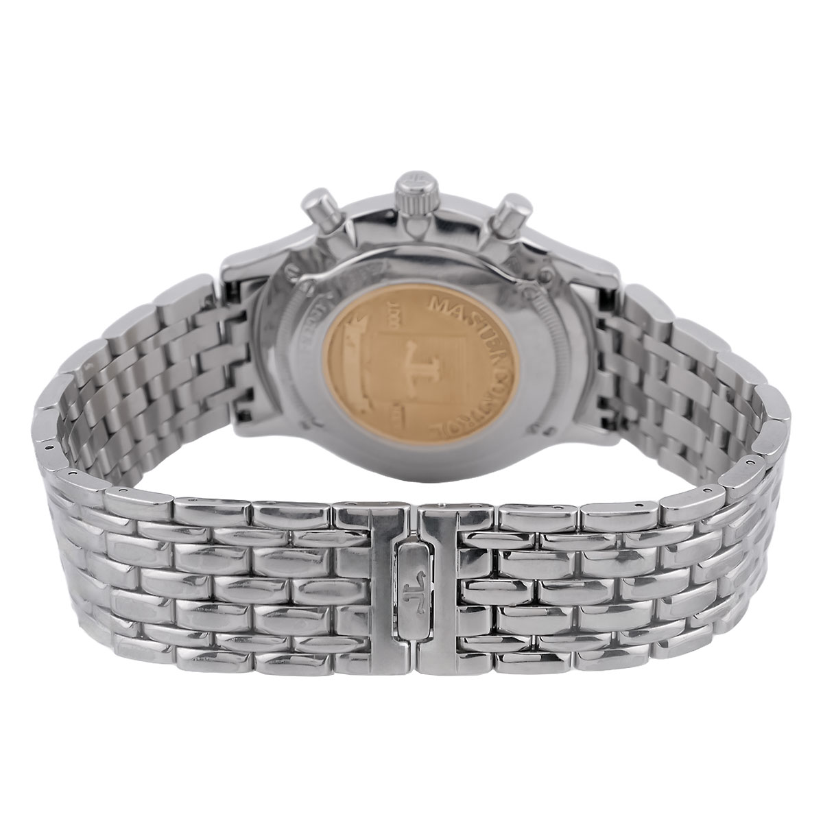 Der JAEGER-LeCOULTRE Master Chronograph Quarz Kaliber 630 mit der Referenz 145.8.31 vereint Schweizer Uhrmacherkunst mit präziser Quarztechnologie. Diese elegante Herrenuhr verkörpert die charakteristische Ästhetik der Master-Kollektion und bietet gleichzeitig die Genauigkeit eines Quarzwerks. Das Gehäuse besteht aus Edelstahl und hat einen Durchmesser von etwa 34 mm. Die Gehäuseform ist klassisch und elegant, typisch für die Master-Kollektion. Die Uhr hat ein Saphirglas. Das Zifferblatt ist in Silber gehalten, mit einer klaren und gut lesbaren Anordnung von Indizes und Chronographenzählern. Die Zeiger sind fein und elegant gestaltet. Die Uhr trägt ein hochwertiges Edelstahlband im Reiskorndesign mit Faltschließe aus Edelstahl, passend zum Gehäuse. Die Uhr wird von einem Quarzwerk angetrieben, was für Präzision und Zuverlässigkeit sorgt. Das Uhrwerk ist sehr flach.