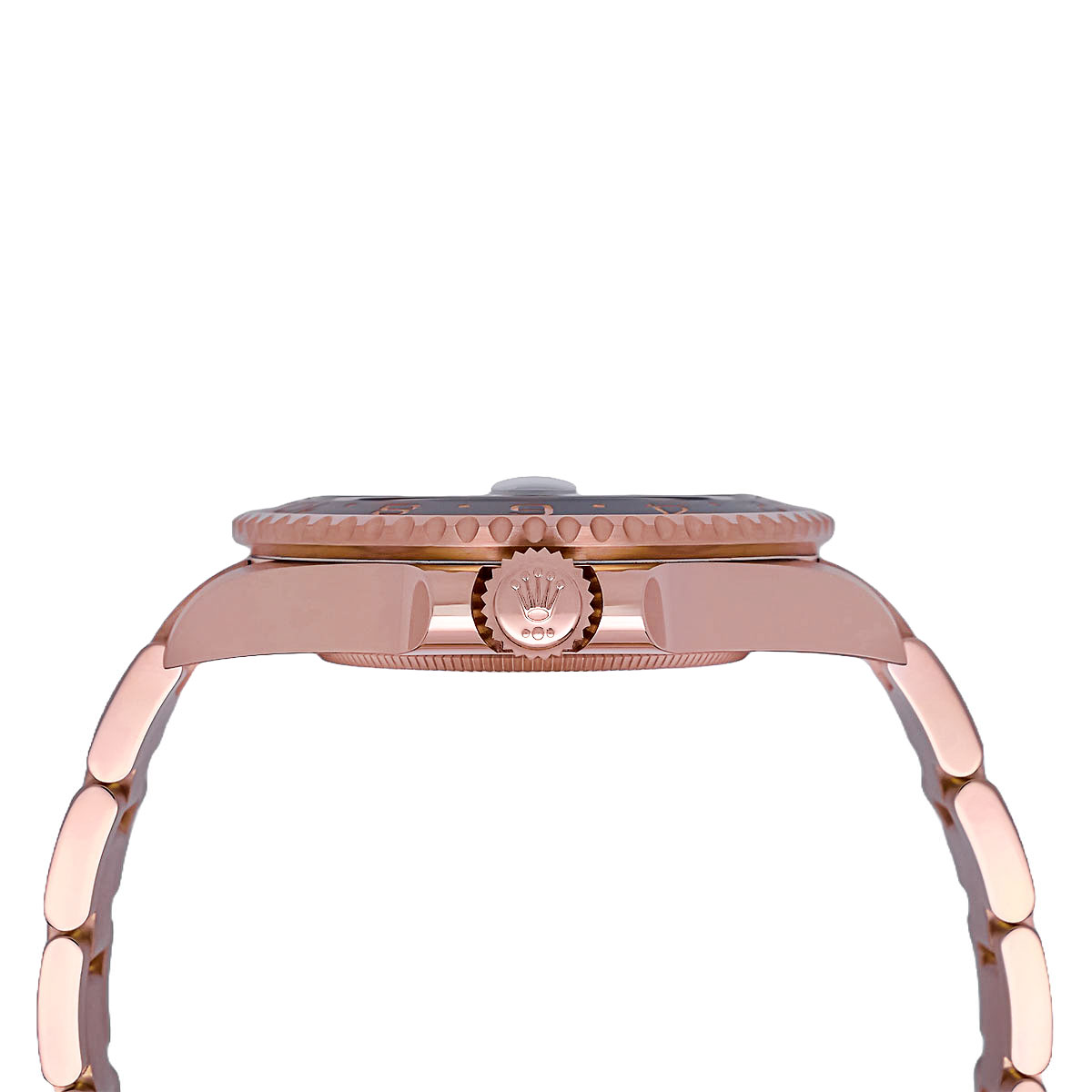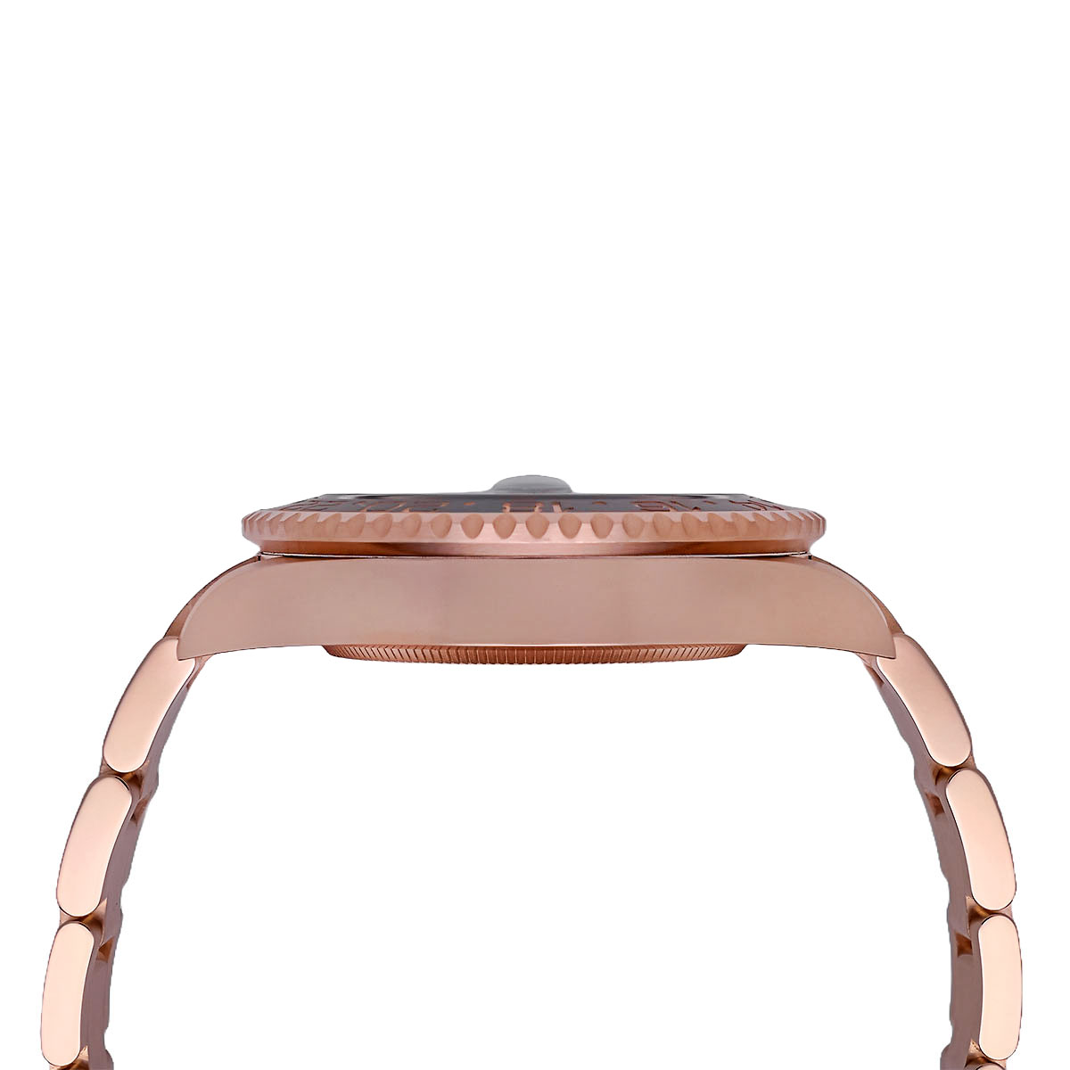 Die ikonische Cerachrom-Lünette erfasst das Licht und interagiert mit den Reflexionen, als ob sie die Historien Ihrer Reisen in sich berge, mit ihren erdigen Braun- und tiefen Schwarztönen, die an einen edlen Tropfen „Rootbeer“ denken lassen. Von geschäftigen Metropolen bis hin zu stillen Oasen stellt sie einen stummen Zeugen unzähliger Sonnenauf- und Sonnenuntergänge dar.