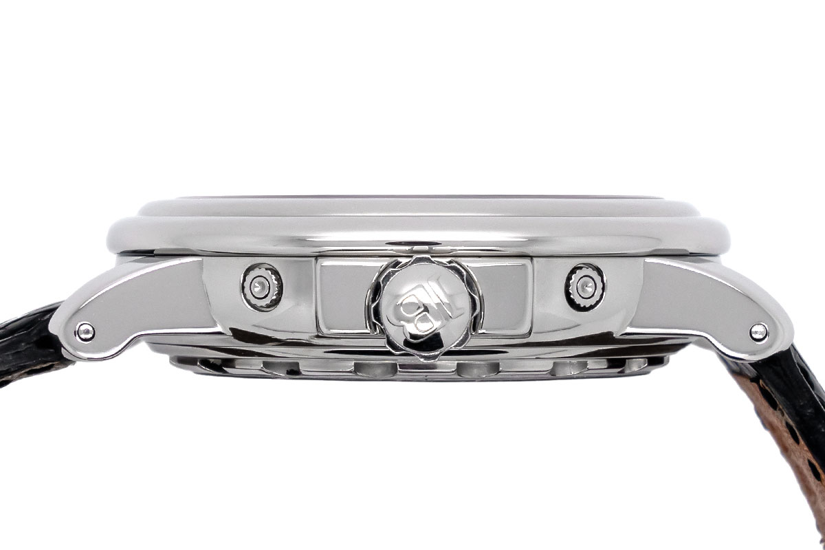 - Dreifachdatumsanzeige: Die Zeigerdatumsanzeige aus der Mitte, die Wochentagsanzeige bei 12 Uhr und die Monatsanzeige bei 12 Uhr bieten dem Träger alle wichtigen Informationen auf einen Blick.
