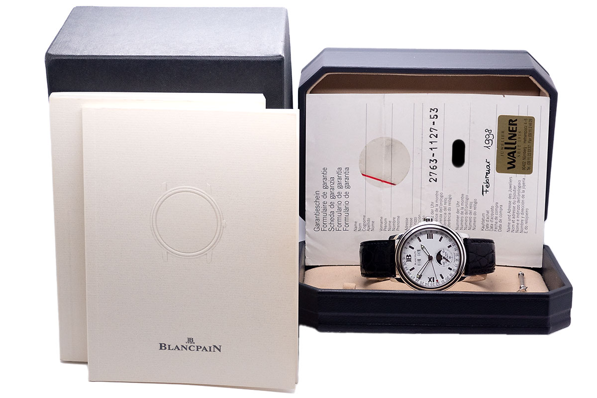 Die Blancpain Leman Mondphasenkalender Triple Date Referenz 2763-1127-53 ist eine exquisite mechanische Uhr, die die höchsten Ansprüche an Qualität, Funktionalität und Design erfüllt.