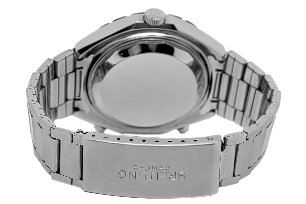 Die Breitling Navitimer Chrono-Matic Kaliber 11 mit der Referenz 1806 ist ein legendärer Chronograph der 1968 eingeführt wurde, er ist für sein markantes Design und seine technische Innovation bekannt. Das Gehäuse besteht aus Edelstahl und hat einen Durchmesser von etwa 48 mm, was für damalige Verhältnisse sehr groß war. Die Uhr verfügt über eine drehbare Lünette mit integriertem Rechenschieber, einem charakteristischen Merkmal der Navitimer-Kollektion. Das Zifferblatt ist schwarz, mit weißen Hilfszifferblättern für die Chronographenfunktionen. Die Anordnung der Hilfszifferblätter ist aufgrund des Chrono-Matic-Uhrwerks einzigartig. Die Datumsanzeige befindet sich meistens auf der 6 Uhr Position. Diese Uhr trägt Plexiglas. Ein Edelstahlarmband sorgt für einem angenehmen Tragekomfort. Die Uhr wird von einem automatischen Chronographenwerk angetrieben, dem Breitling Kaliber 11, das zu den ersten automatischen Chronographenwerken gehörte. Das Uhrwerk ist bekannt für seine Zuverlässigkeit und Präzision.