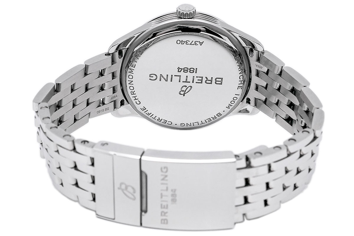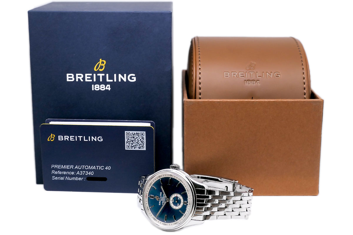 Besondere Merkmale: Die Premier-Kollektion von Breitling ist bekannt für ihre eleganten und klassischen Uhren. Die Uhr hat eine verschraubte Krone. Die Uhr hat einen verschraubten Gehäuseboden. Die Uhr hat Leuchtzeiger und Leuchtindizes. Die Uhr kann von Herren, als auch von Damen getragen werden (Unisex).