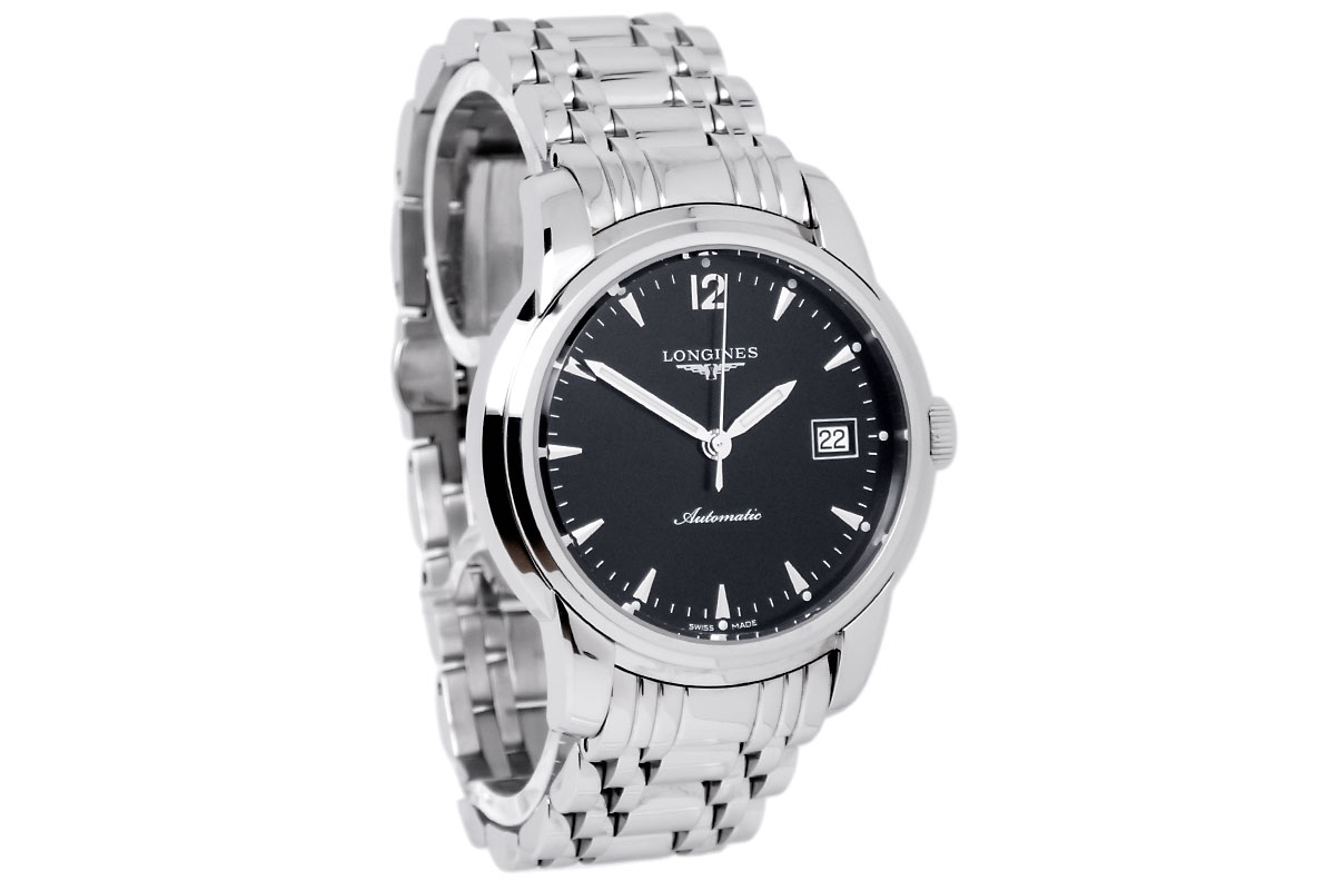 Die LONGINES Saint-Imier 38 mm Kaliber L619/888 Referenz L2.763.4.52.6 besticht durch ihr sportliches und elegantes Aussehen. Eine klassische, doch sportliche Uhr aus dem Hause LONGINES. Das 38-mm-Gehäuse besteht aus Edelstahl und ist sowohl poliert als auch satiniert, was der Uhr ein edles Aussehen verleiht. Die Gehäuseform ist rund und klassisch, typisch für die Saint-Imier-Kollektion von Longines. Die Uhr verfügt über einen Sichtboden, durch den man das Uhrwerk bewundern kann. Das Zifferblatt ist in schwarz, was eine gute Ablesbarkeit gewährleistet. Die Indizes und Zeiger sind mit Leuchtmasse versehen, was die Ablesbarkeit bei schlechten Lichtverhältnissen verbessert. Die Zifferblätter haben ein sehr klassisches und edles aussehen. Ein kratzfestes Saphirglas mit Antireflexbeschichtung schützt das Zifferblatt. Die Uhr ist mit einem Edelstahlarmband ausgestattet, das einen sicheren und komfortablen Halt bietet. Die Uhr wird von einem Automatikwerk angetrieben, typischerweise dem Longines Kaliber L619/888, das auf dem ETA 2892-A2 basiert. Der Sichtboden ermöglicht es das Uhrwerk zu bewundern.