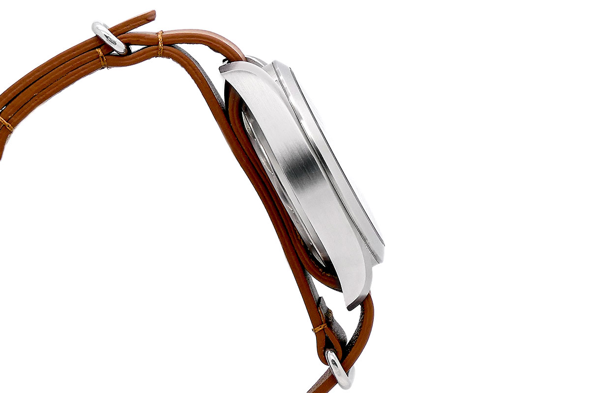 The OMEGA Seamaster Railmaster Co-Axial Master Chronometer 40 mm with the reference 220.12.40.20.06.001 is a modern interpretation of a classic anti-magnetic watch known for its robustness and precision. This watch embodies the perfect combination of industrial heritage and modern watchmaking. The 40 mm case is made of stainless steel and is both satin-finished and polished, giving the watch a robust yet elegant appearance. The watch has a screw-down crown and a screw-down case back, which contributes to its water resistance. The bezel is smooth and polished, giving the watch a sleek and functional look. The brushed grey dial with its "vertical brushed" finish is reminiscent of the original Railmaster from the 1950s. The striking Arabic numerals and indices are coated with Super-LumiNova and shine in a soft bluish light in the dark. The dials are very pleasant to the touch and easy to read. A scratch-resistant sapphire crystal with anti-reflective coating on both sides protects the dial. The watch is fitted with a brown leather strap that offers a sporty and comfortable grip. The watch is powered by the OMEGA Co-Axial Master Chronometer Calibre 8806, an automatic chronometer movement renowned for its precision and reliability. The movement is anti-magnetic up to 15,000 gauss and offers high rate accuracy. The movement is visible through the sapphire crystal case back.