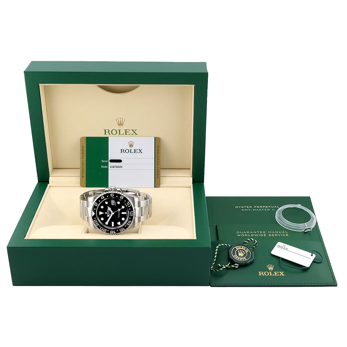The history of the ROLEX GMT-Master II is as captivating as the technical features of this watch. Since Rolex was founded in 1905, it has built a reputation for excellence in watchmaking. The GMT-Master was launched in the 1950s. It quickly became a popular favorite among pilots and airlines. The 116710LN brings this tradition into the modern age, while maintaining Rolex's high-quality standards. Carefully constructed movements and carefully selected materials reflect the legacy and dedication to watchmaking that continues to drive the brand.