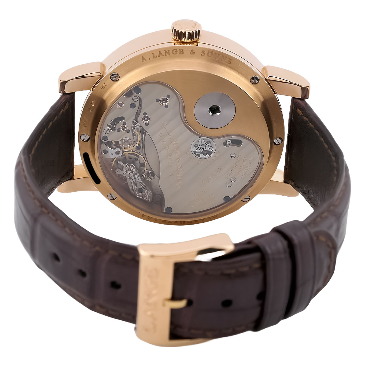Einzigartiges Manufakturkaliber: Handaufzugswerk L034.1, von Hand veredelt, mit ikonischem Lange-Finish.