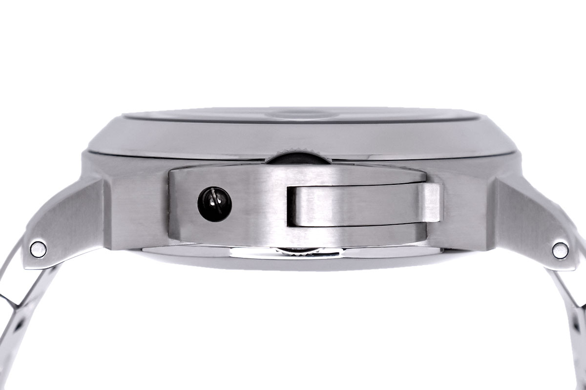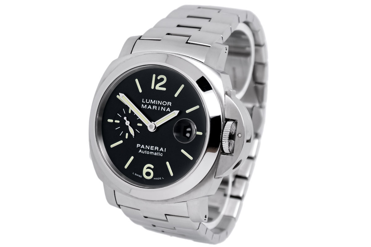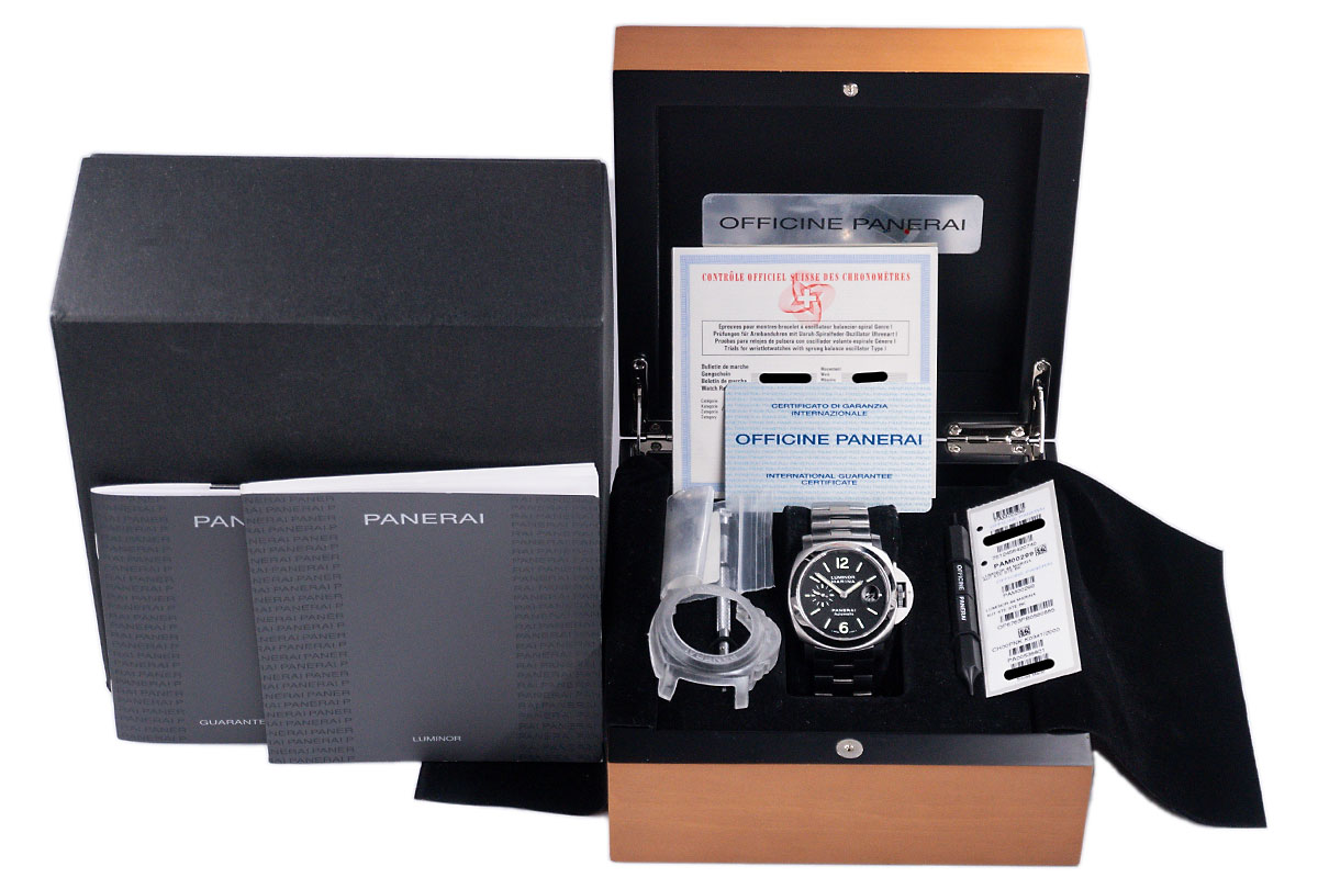 Die Officine Panerai Luminor Marina 44 Automatic (Ref. PAM00299) ist eine Ikone der italienischen Uhrmacherkunst, die die perfekte Verbindung aus Funktionalität, Robustheit und zeitlosem Design verkörpert. Das 44-mm-Gehäuse besteht aus Edelstahl und ist für den täglichen Gebrauch sowie für anspruchsvolle Bedingungen konzipiert. Ein unverwechselbares Merkmal ist der patentierte Kronenschutzbügel, der die verschraubte Krone schützt und die Wasserdichtigkeit gewährleistet. Die Lünette ist glatt und poliert, was der Uhr ein klassisches und funktionales Aussehen verleiht. Das schwarze Zifferblatt ist mit arabischen Ziffern und Leuchtmarkierungen ausgestattet, die eine hervorragende Ablesbarkeit bei Tag und Nacht gewährleisten. Die kleine Sekunde befindet sich bei 9 Uhr, und das Datumsfenster bei 3 Uhr ist für eine bessere Lesbarkeit vergrößert. Ein kratzfestes Saphirglas schützt das Zifferblatt und bietet eine klare Sicht. Die Uhr ist mit einem robusten Edelstahlarmband ausgestattet, das einen sicheren und komfortablen Halt bietet. Die Uhr wird vom Panerai Kaliber OP III angetrieben, einem automatischen Chronometerwerk, das für seine Präzision und Zuverlässigkeit bekannt ist.