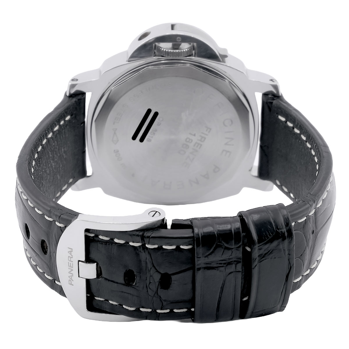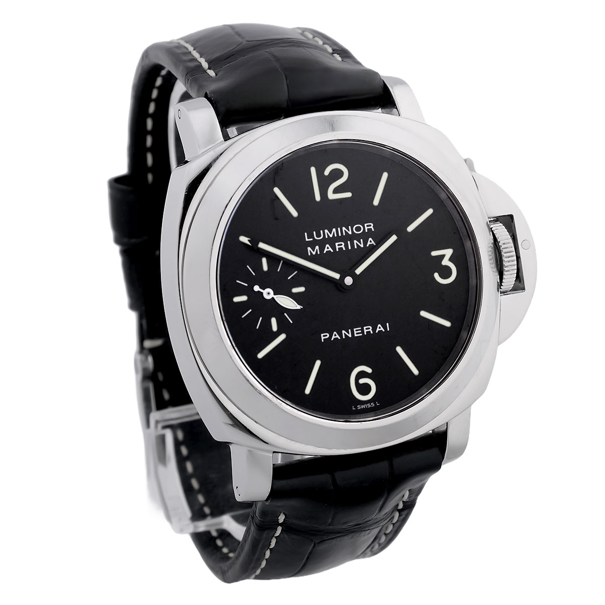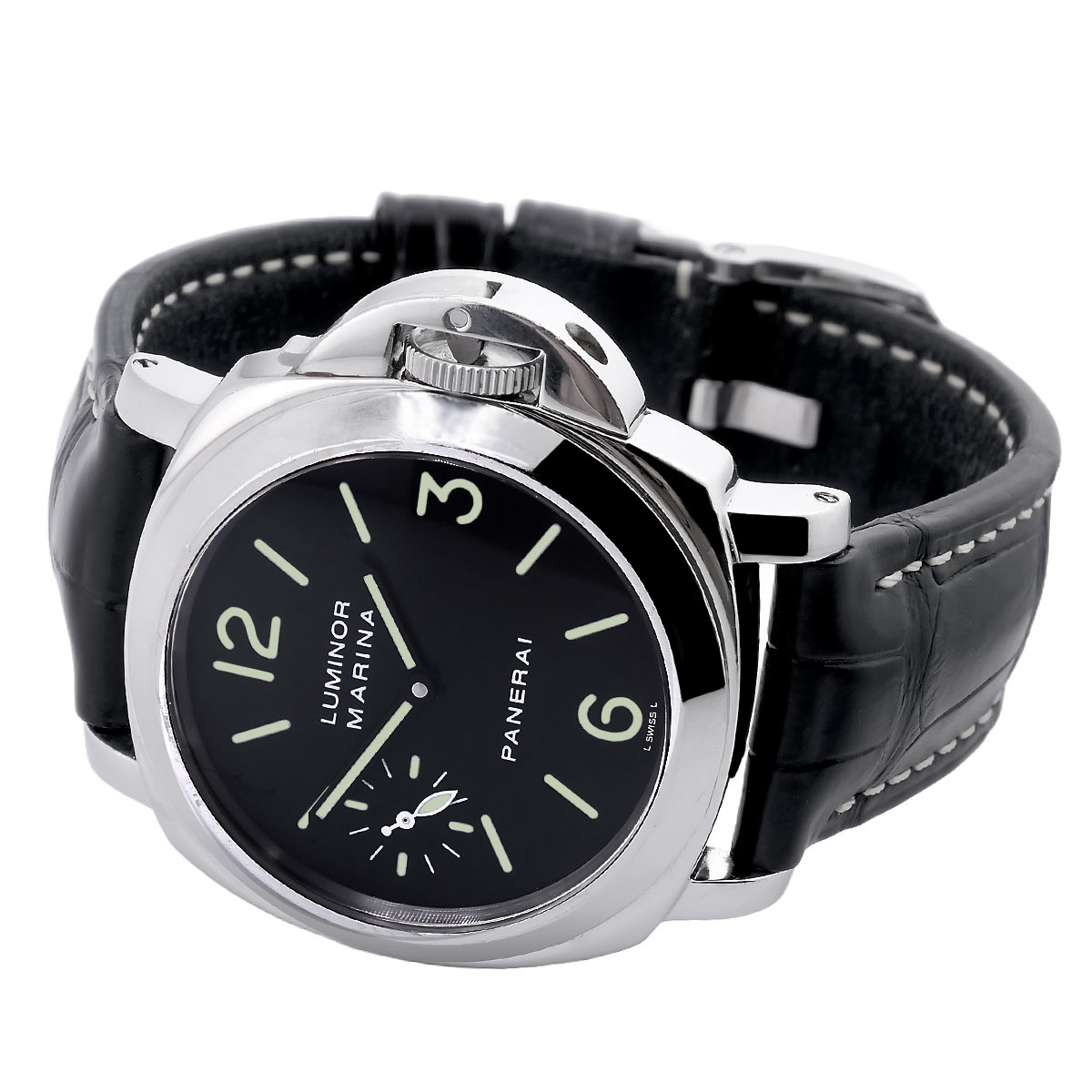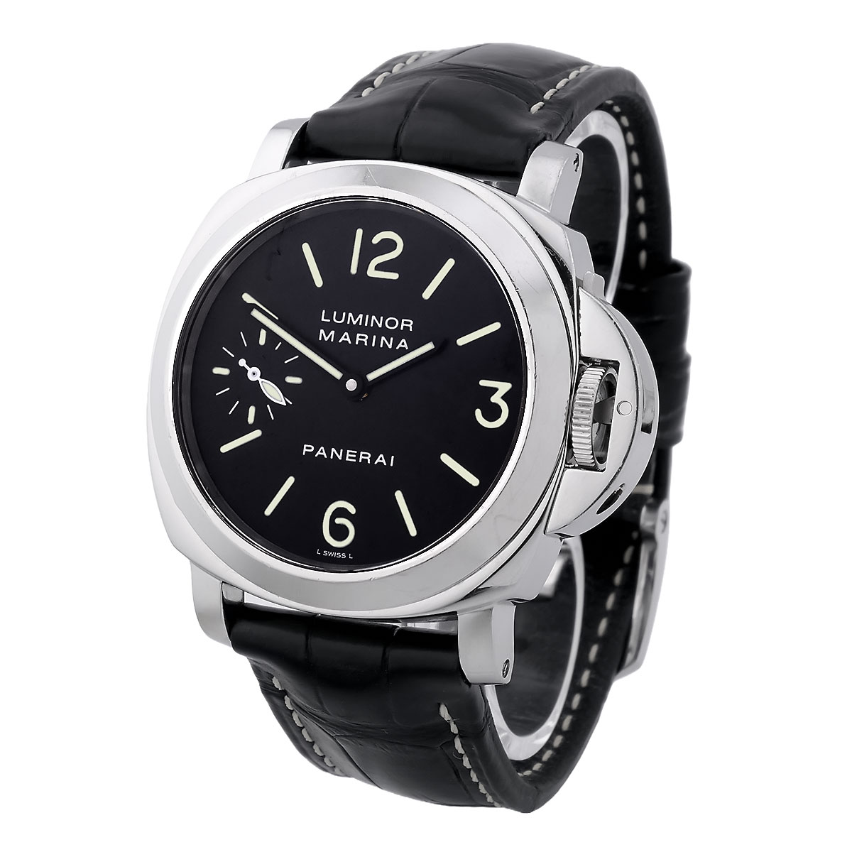 Die OFFICINE PANERAI Luminor Marina Handaufzug mit der Referenz PAM00001 ist eine ikonische Herrenuhr, die für ihr markantes Design und ihre robuste Konstruktion bekannt ist. Das kissenförmige Gehäuse der Luminor Marina ist ein charakteristisches Merkmal von Panerai-Uhren. Es verleiht der Uhr ein unverwechselbares und sportliches Aussehen. Das Gehäuse besteht aus hochwertigem Stahl, was der Uhr eine hohe Widerstandsfähigkeit verleiht. Ein weiteres charakteristisches Merkmal ist die markante Kronenschutzbrücke, die die Krone vor Stößen und Beschädigungen schützt. Das Gehäuse hat einen Durchmesser von 44 mm, was die Uhr zu einem markanten Zeitmesser am Handgelenk macht.