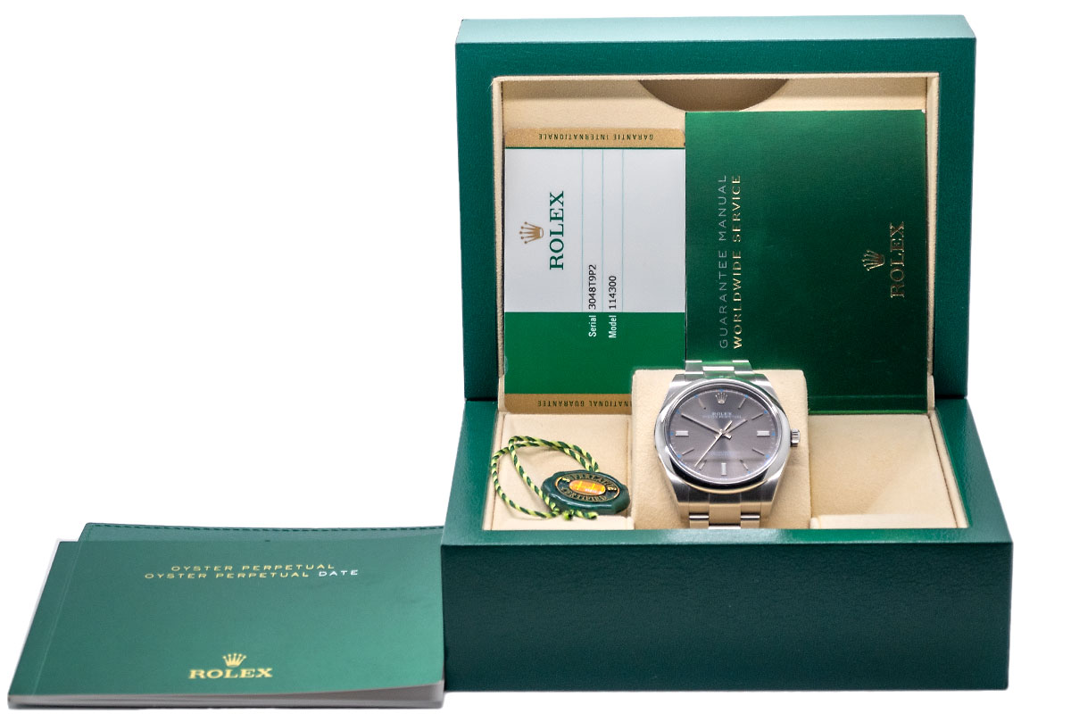 Die Rolex Oyster Perpetual 39 Ref. 114300 Kaliber 3132 mit dem „Dark Rhodium“-Zifferblatt ist eine zeitlose und elegante Armbanduhr, die durch ihre hohe Qualität und Funktionalität überzeugt. Sie ist ein beliebter Klassiker, der sowohl im Alltag als auch bei besonderen Anlässen getragen werden kann.